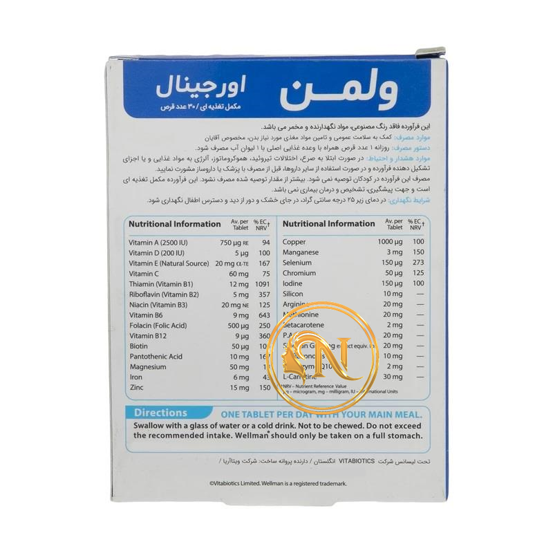 قرص ول من اورجینال ویتابیوتیکس مخصوص آقایان بسته 30 عددی