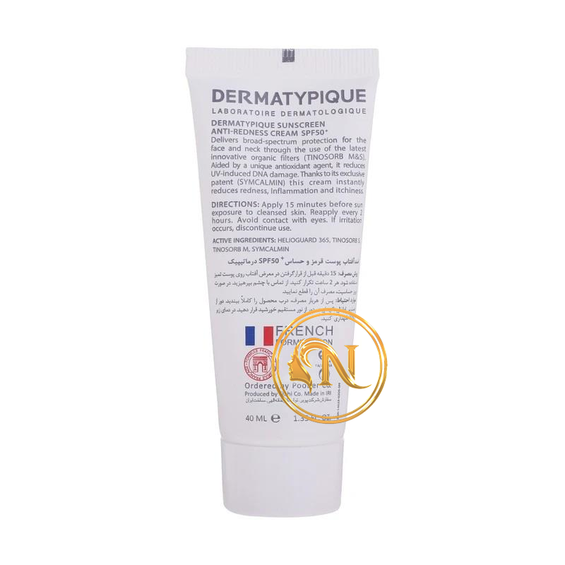 کرم ضدافتاب بی رنگ درماتیپیک SPF50 مناسب پوست قرمز و حساس حجم 50 میل