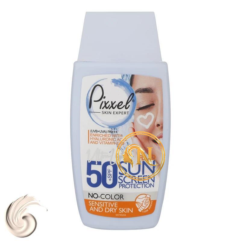 کرم ضدآفتاب پیکسل بی رنگ SPF50 مناسب پوستهای خشک و حساس حجم 50 میل